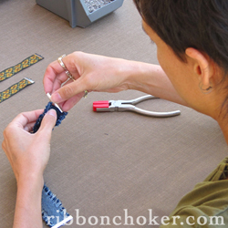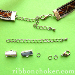 I have a selection of supplies and findings for making ribbon choker necklaces and bracelets in my ArtFire shop: Findings, pliers and hardware kits for ribbon choker necklaces and ribbon bracelets