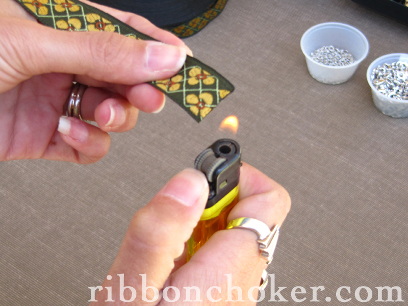 A lighter is handy for searing the edges of synthetics like nylon or polyester. Just wave the flame near the edge of the ribbon and the edge will melt and seal itself to help stop it from fraying.